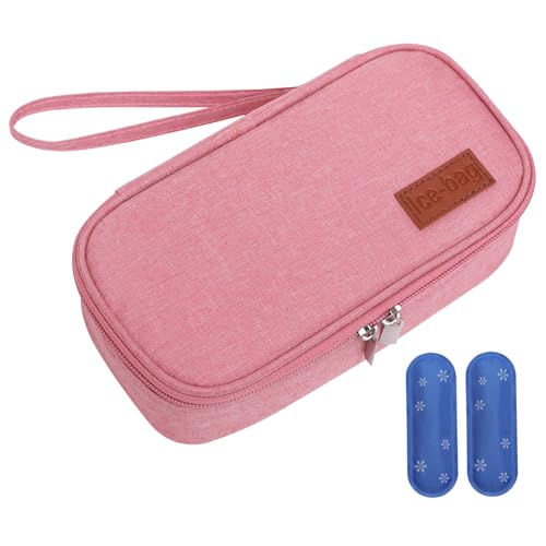 ACWOO Insulated Insulin Bag, Diabetic Travel Bag with 2 Ice Packs, Portable Case for Airplane, Holiday, Business Travel, Pink, Rectangular