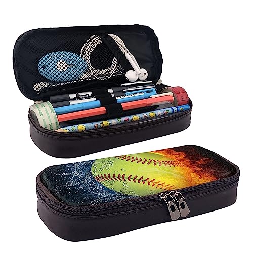 FJQWKLF Pencil Case Cute Pencil Case Storage Pouch, Large Capacity Zipper Portable Pencil Bag Compatible with Ice Water Fire Flame Softball Baseball