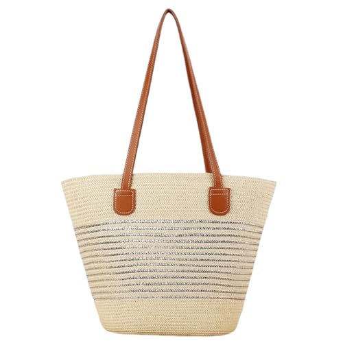 HSTWODE Straw Beach Bag, Straw Bags, Women's Braided Basket Bag, Straw with Zip and Leather Shoulder Strap for Beach, Travel, Shopping, 5#, 24*28*15cm