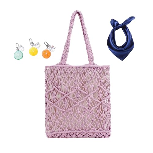 YANROSE Summer Mesh Hollow Straw Tote Bag For Holiday Market, Beach Bags For Women, Beach Tote Bag(Purple2)