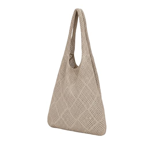 SrgPui Crochet Bags for Women, Beach Tote Bag for Outings and Shopping, Boho Casual Handbag, Woven Tote Bag in Khaki, Spacious Crochet Beach Bag for Travel, Daily,Shopping Use,Khaki