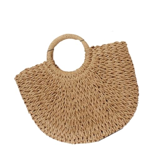 CGRSDSD Straw Bag Summer Handmade Bags for Women Beach Weaving Ladies Straw Bag Wrapped Beach Bag Moon shaped Top Handle Handbags Totes(Khaki S)