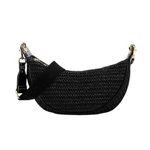 Generisch 2026 Shoulder Bags for Women Beach Woven Handbag Shoulder Purses with Adjustable Strap, black, 28x17cm