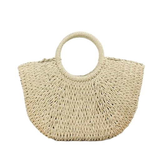 CGRSDSD Straw Bag Summer Handmade Bags for Women Beach Weaving Ladies Straw Bag Wrapped Beach Bag Moon shaped Top Handle Handbags Totes(Beige S)