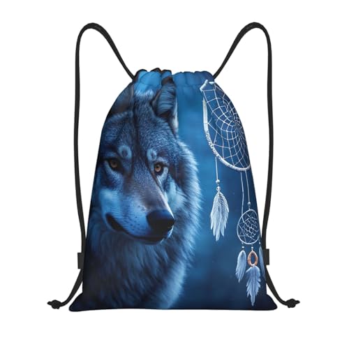 MXZERFKGLA Drawstring Backpack Sports Gym Bags wolves and dream catchers Drawstring Bags for Men Women Beach Bag String Bag