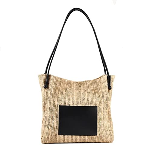 IWENZHKPA Straw Tote Bag Straw Woven Shoulder Bag Women Tote Bags Handbags Beach For Women(Black)