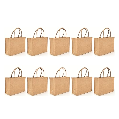 Oreilet 10pcs Burlap Tote Bag, Reusable Shopping Jute Tote Bags with Handles, Blank Grocery Bags for Women Beach Bridesmaid Gift Wedding Travel DIY, 15.35x12.2x5.9in (Khaki)