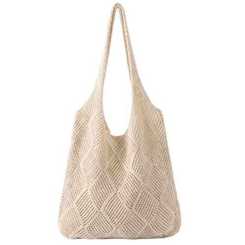 KSVFTB Crochet Bags for Women, Beach Tote Bag for Outings and Shopping, Boho Casual Handbag, Woven Tote Bag in Beige, Spacious Beach Bag with Durable Construction for Travel, Daily,Shopping