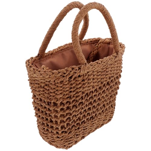 YANROSE Summer Mesh Hollow Straw Tote Bag For Holiday Market, Beach Bags For Women, Beach Tote Bag(Brown)