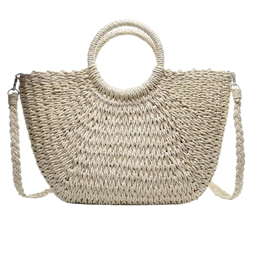 NJIEzhao Woven Beach Bag Summer Handmade Bags for Women Beach Weaving Ladies Straw Bag Wrapped Moon shaped Top Handle Handbags Totes(Beige addstrap S)