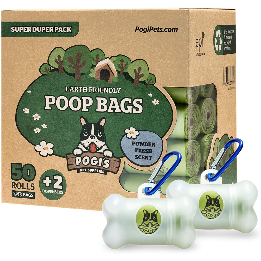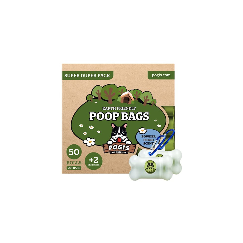 Pogi's Poop Bags - 50 Rolls (750 Dog Poo Bags) +2 Dispensers - Scented, Leak-Proof, Biodegradable Poo Bags for Dogs