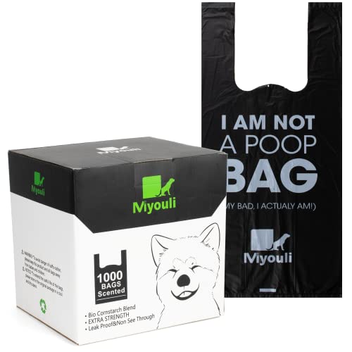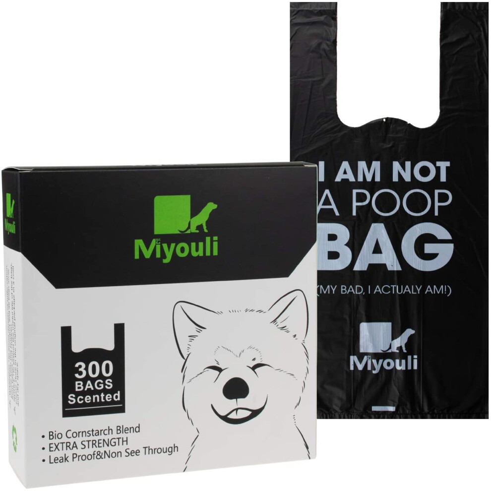 Miyouli 300 Counts Extra Thick Black Biodegradable Pet Poop Waste Bags With Handles for Dogs, Ocean Wind-Scented