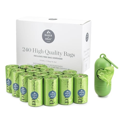 240 Poo Bags for Dogs & Free Poop Bag Dispenser: Baker & Bray Eco Friendly Dog Poop Bags, Guaranteed Leakproof Extra Thick Waste Poo Bag For Dogs