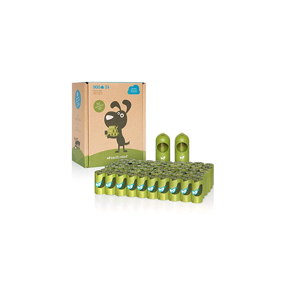 Earth Rated Dog Poo Bags, 900 Extra Thick and Strong Biodegradable Poo Bags for Dogs, Guaranteed Leak-proof, Unscented, 60 Rolls, 15 Doggy Bags Per Ro