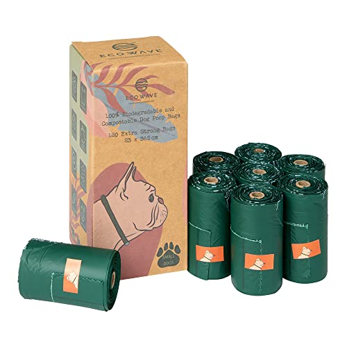 ECO WAVE Compostable Leak-Proof Dog Poop Bags For Small Dogs, Thick and Strong, 120 Fragrance Free Bags, EN 13432 Certified