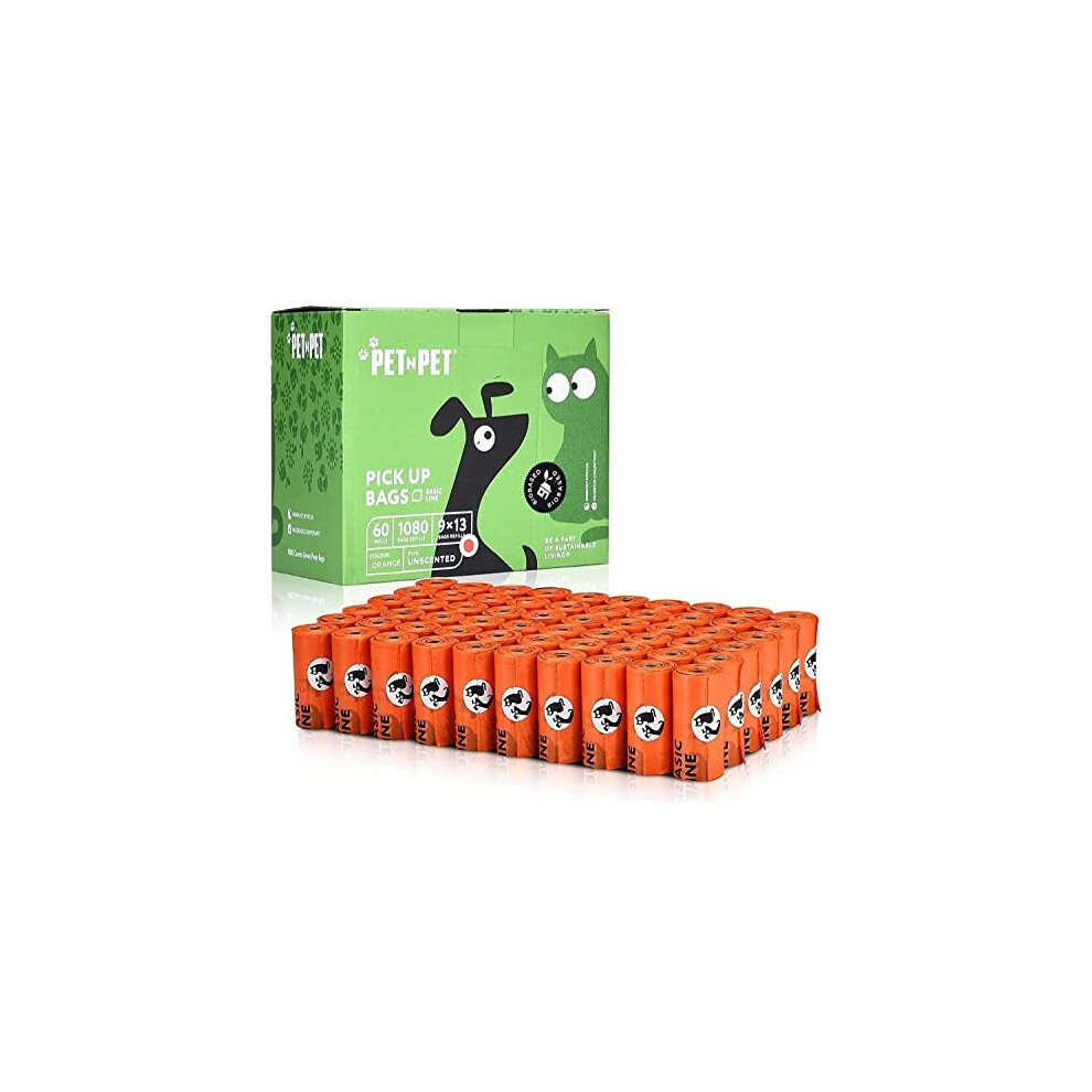 PET N PET Large Dog Poo Bags Biodegradable for Dogs - 1080 Count 60 Rolls Poop Bags for Dog Cat Poo Bag Holder, USDA Certified Nappy Doggy Poop Bags