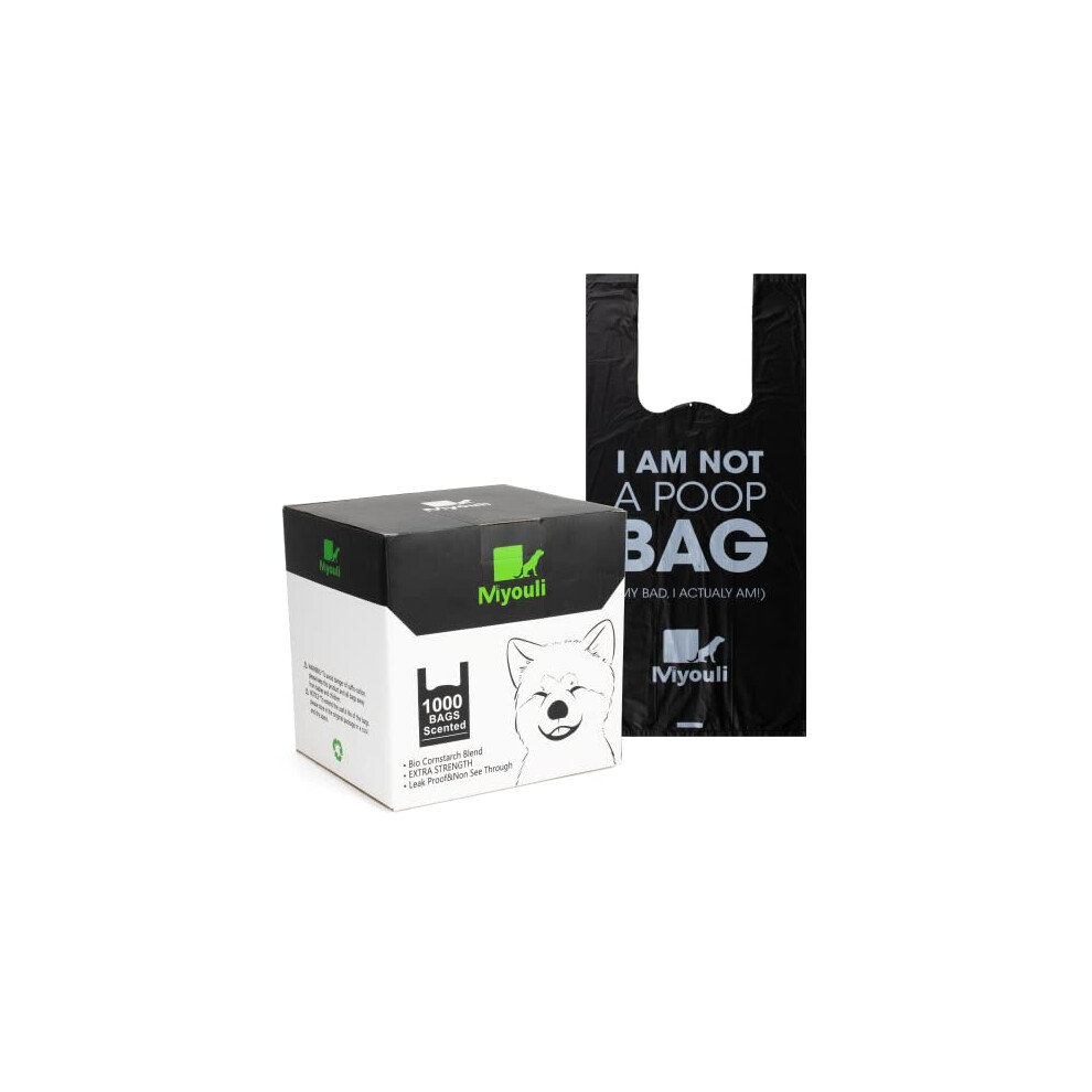 1000 Counts Extra Thick Black Biodegradable Pet Poop Waste Bags With Handles for Dogs, Ocean Wind-Scented