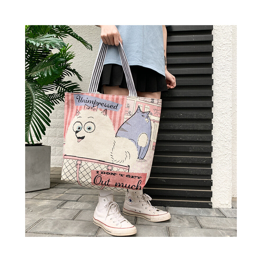 Canvas Tote Bags for Women Cartoon Dogs Cats Big Size Shopping Bag Female Girls Beach Shoulder Bag School Teacher Gift
