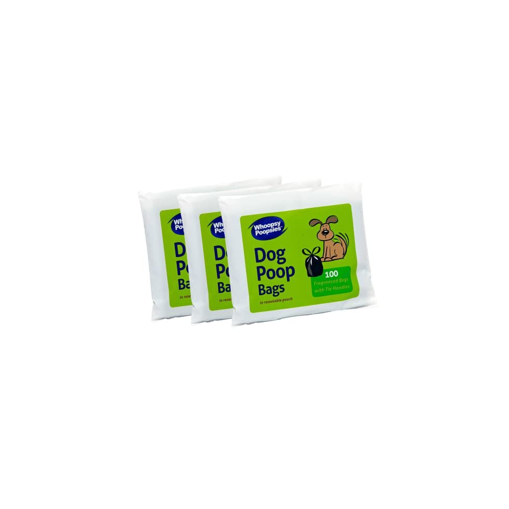 Whoopsy Poopsies Dog Poop Bags - 3 x 100 Bags. Large Tie Handle Poo Bags For Dogs. Heavy Duty Disposable Pet Waste Sacks- Scented, Black. Dog Walking