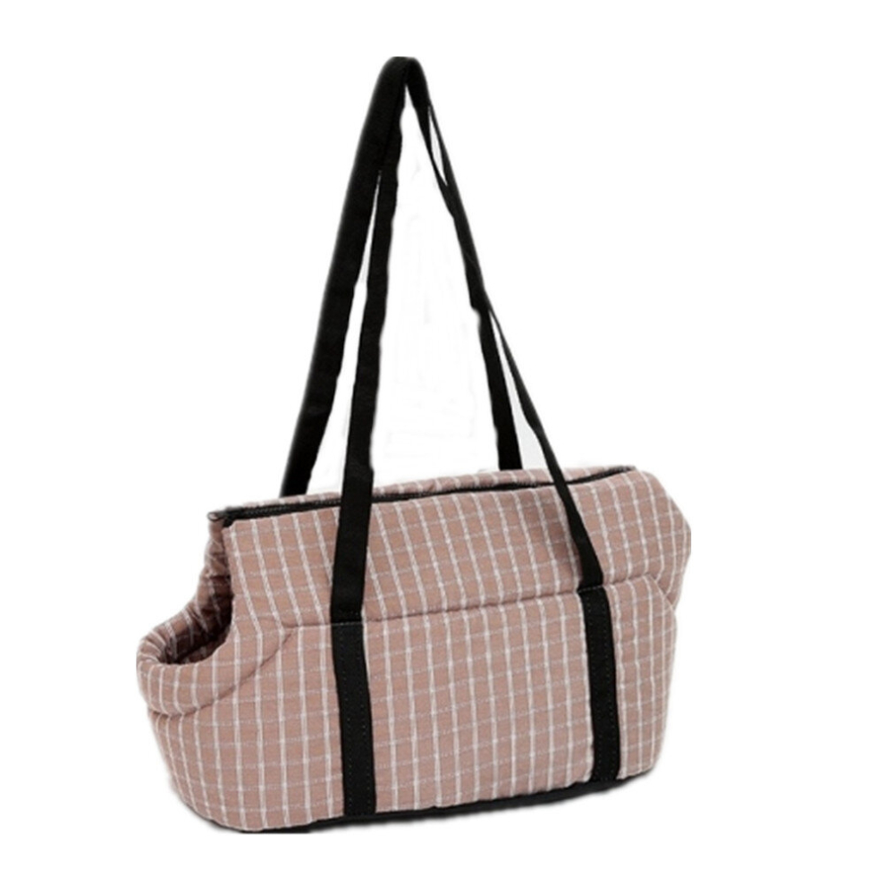 Outside Travel Puppy Dogs Breathable Carrying Plaid Shoulder Bags for Pet Dogs Cats(Light Coffee)