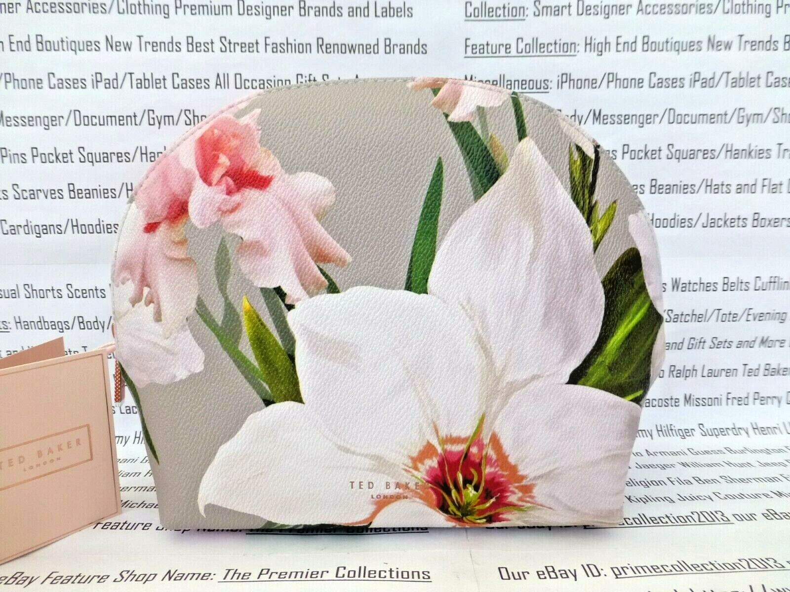 TED BAKER Chatsworth Women Wash Bag Large Dome Make-Up Mid Grey Floral Bags BNWT