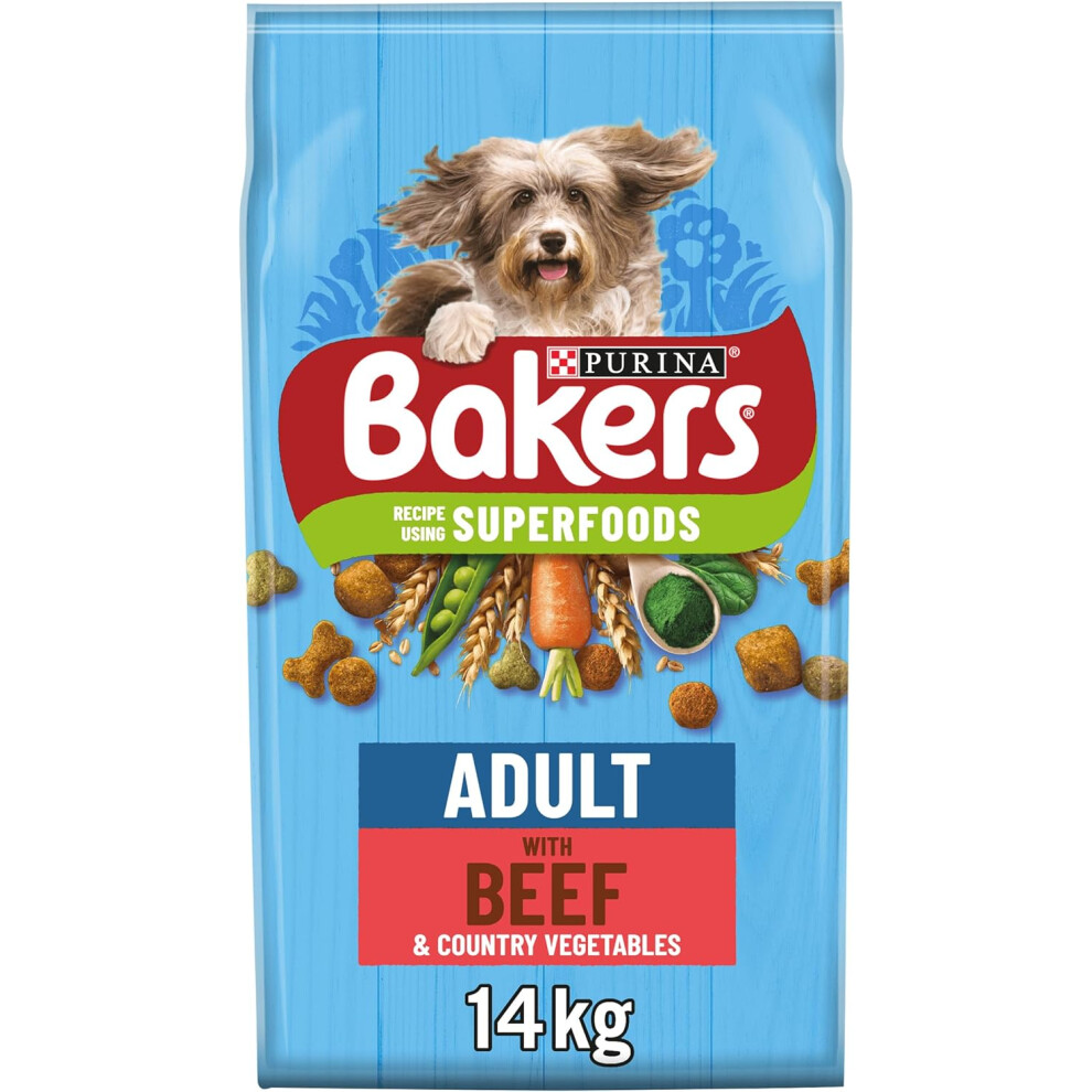 Bakers Adult Dry Dog Food Beef and Veg 14 kg, Packaging May Vary