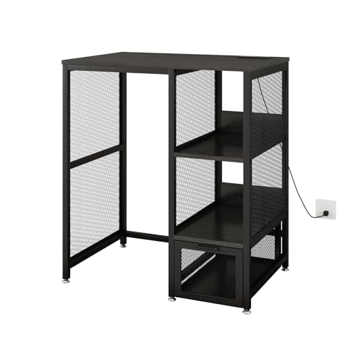 METYERRY Kitchen Bakers Rack with Power Outlet, Microwave Stand with Drawer, Mini Fridge Stand with Adjustable Shelves,Mini Fridge Cabinet Suitable for Dining Room, Dorm,Home, Black