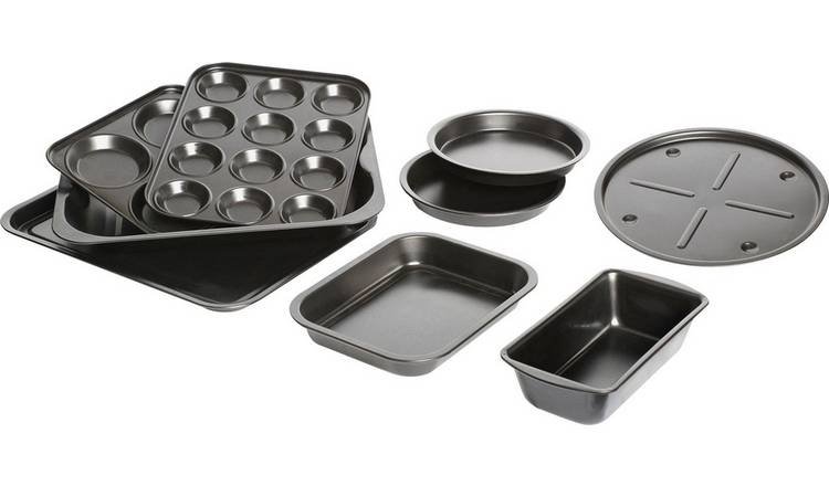 9pc Non-Stick Bakeware Set, Roasting Rack, Pan, Trays, Pizza Crisper