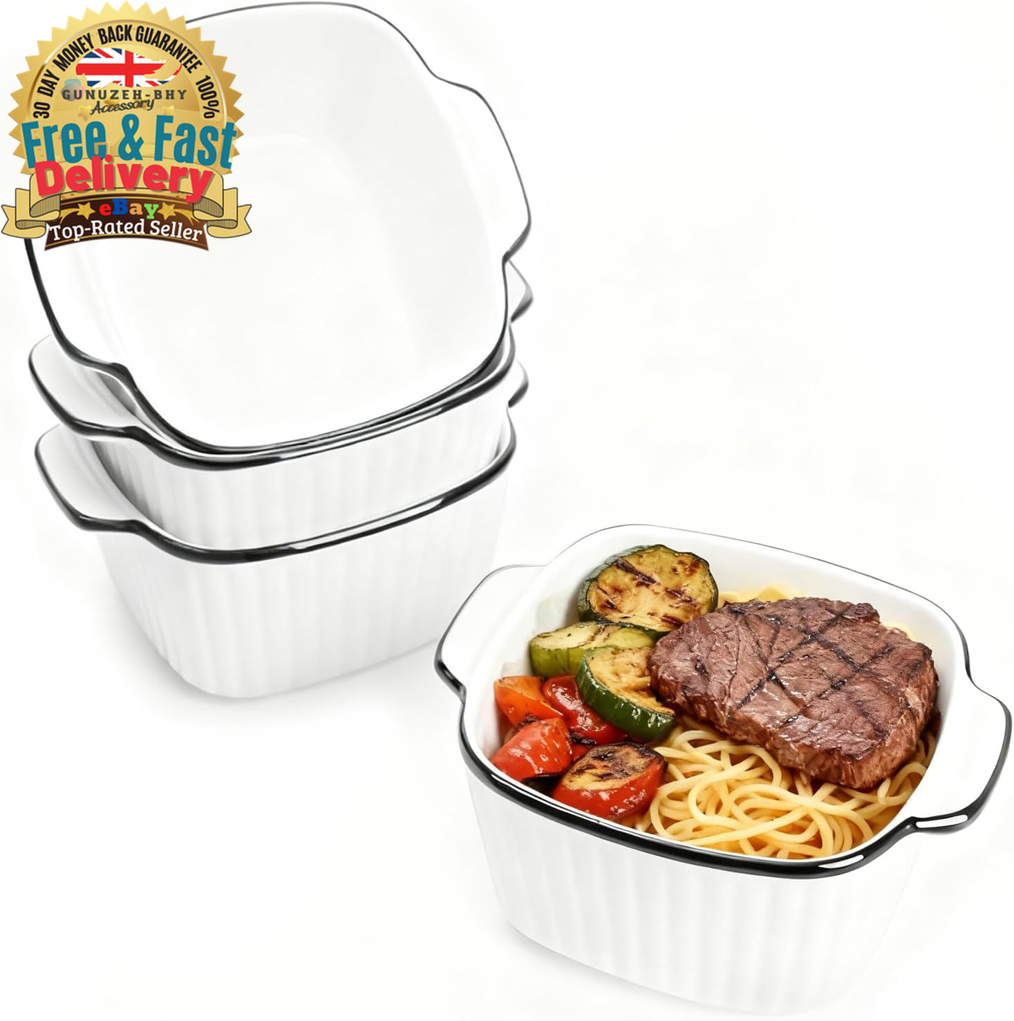 NUTRIUPS 13Oz Ceramic Baking Dishes set of 4, Square Baking Dishes, 400 ml Small Baking Dish for Air Fryer, Ceramic Bakeware with Handles (Ribbed Design-Set of 4)