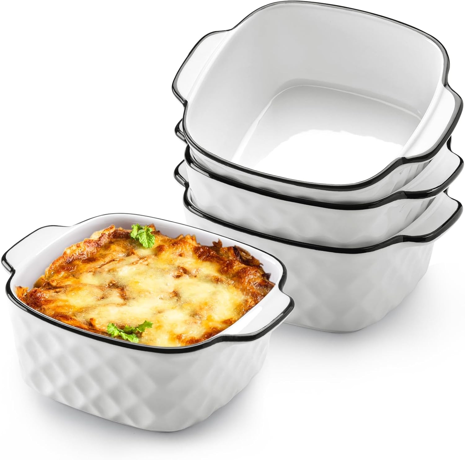 NUTRIUPS 13Oz Ceramic Baking Dishes set of 4, Square Baking Dishes, 400 ml Small Baking Dish for Air Fryer, Ceramic Bakeware with Handles (Diamond Design-Set of 4)