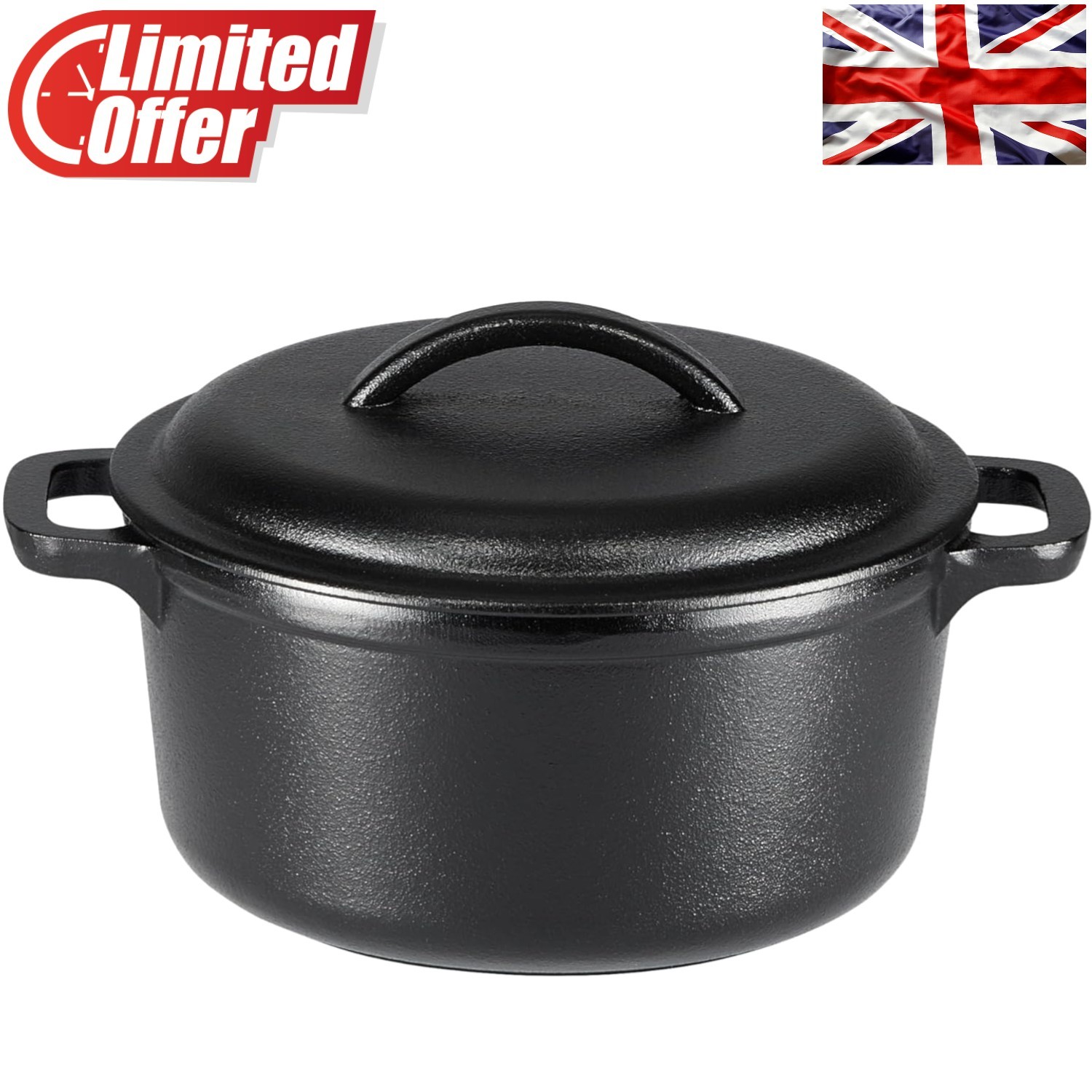 Cast Iron Mini Dutch Oven 1.89L - Dual Handles for Safe Cooking and Baking