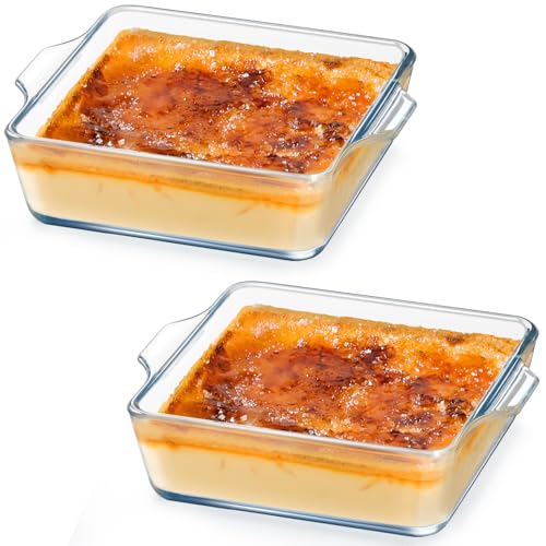 NUTRIUPS Set of 2 Mini Square Borosilicate Glass Baking Dishes, 0.4L 12x15x4cm Oven and Freezer Safe, Durable for Meal Prep, Baking and Ramekins