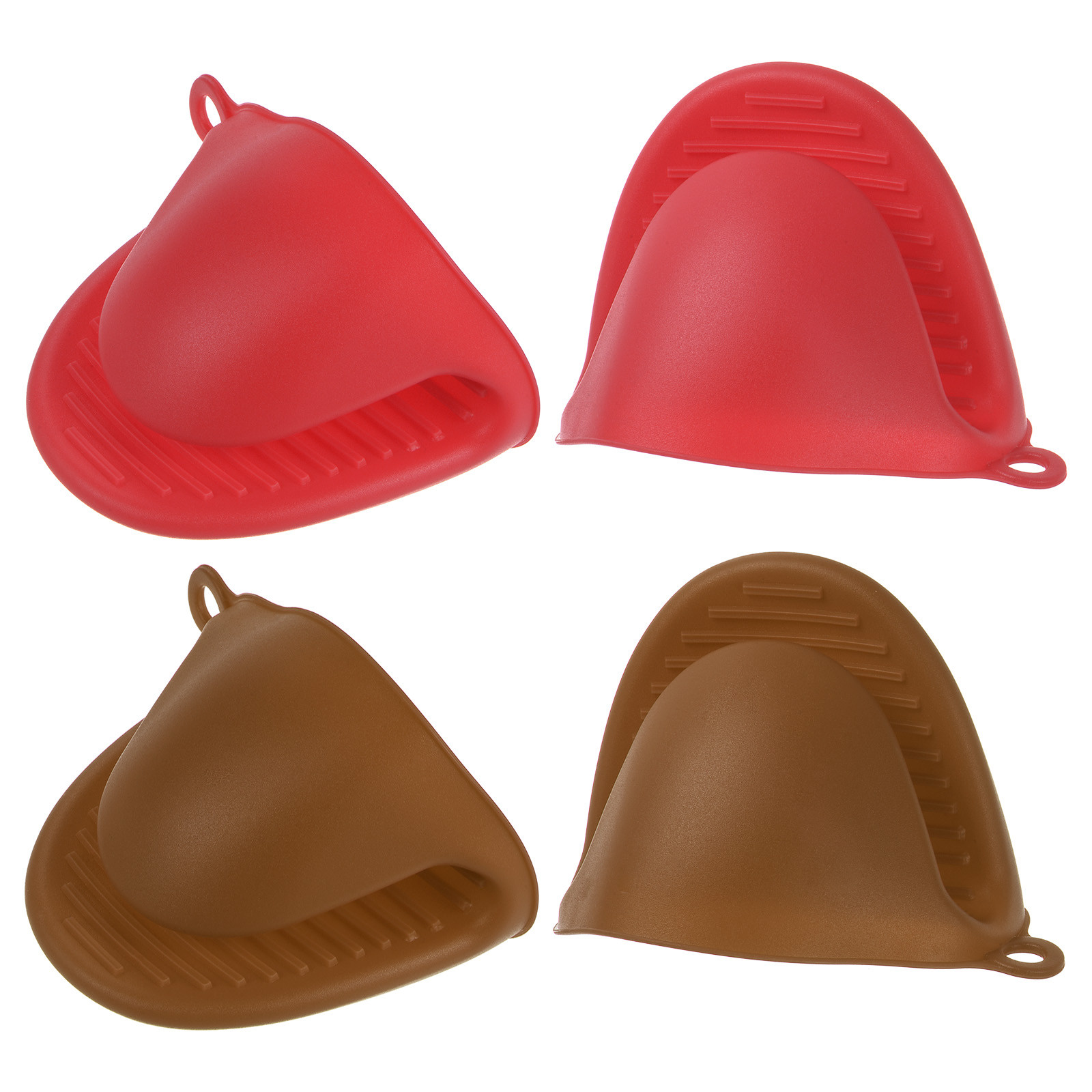 4pcs Mini Silicone Oven Mitts for Cooking Baking Gloves Red Brown