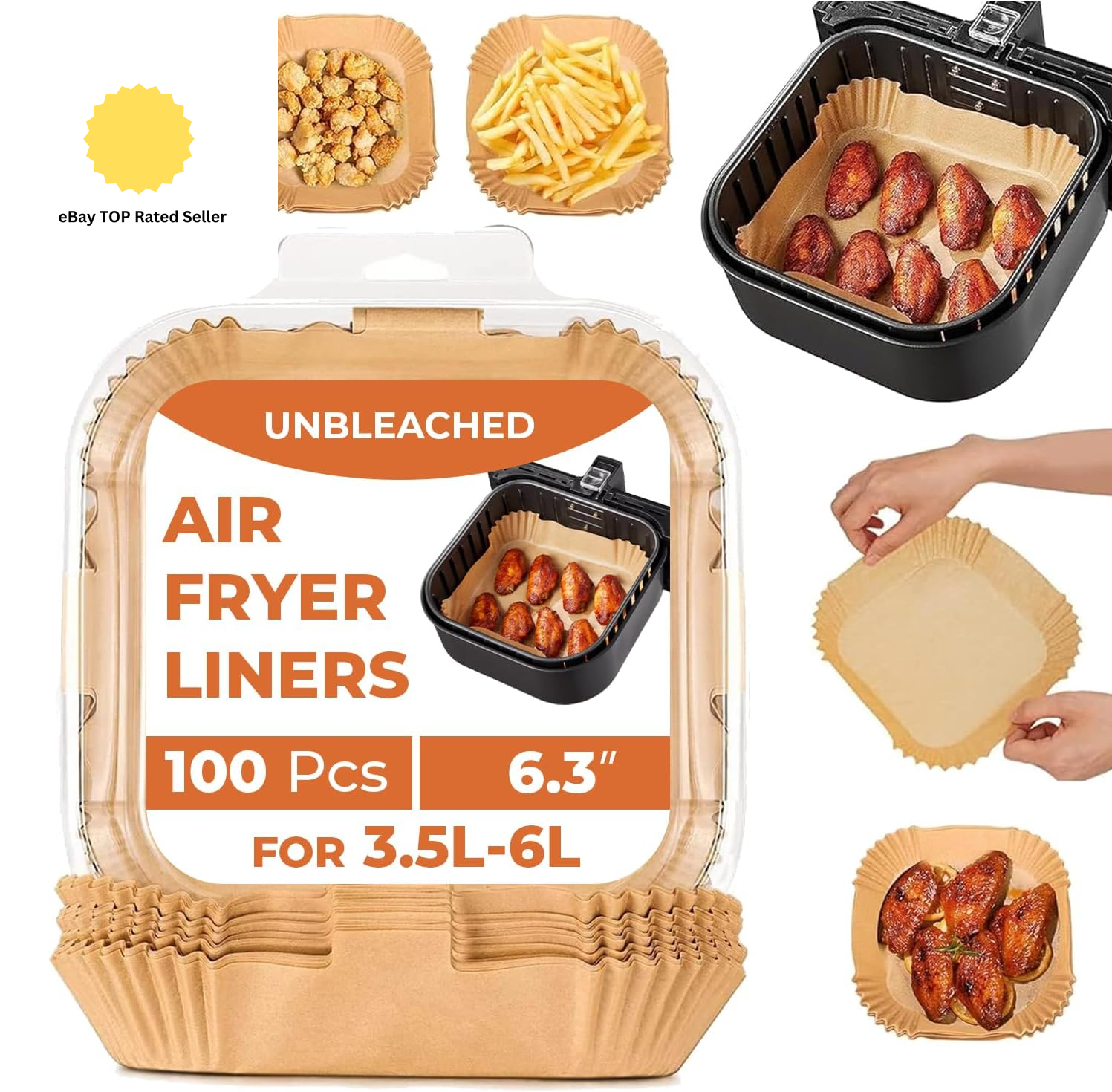 Roe Tenpo Air Fryer Liners, 100Pcs Disposable Baking Parchment Paper, Non-Stick & Greaseproof, Air Fryer Accessories for Ninja AF180UK AG301UK, COSORI, Tefal Easy Fry, Russell Hobbs Air Fryer