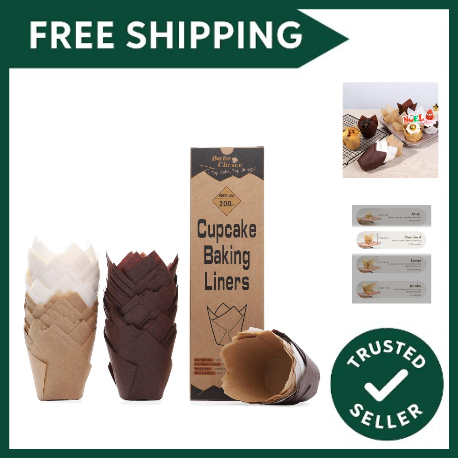 Nordic Paper 200pcs Tulip Muffin Cases for Baking Cups, Parchment Paper Stan...