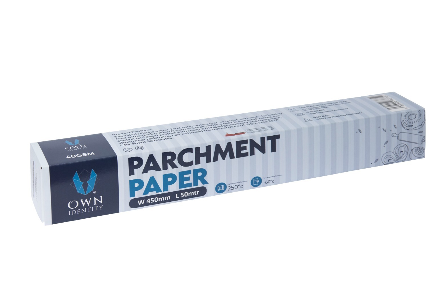 Professional Non Stick Baking Parchment Paper Roll with Cutterbox - 45cm x 50m