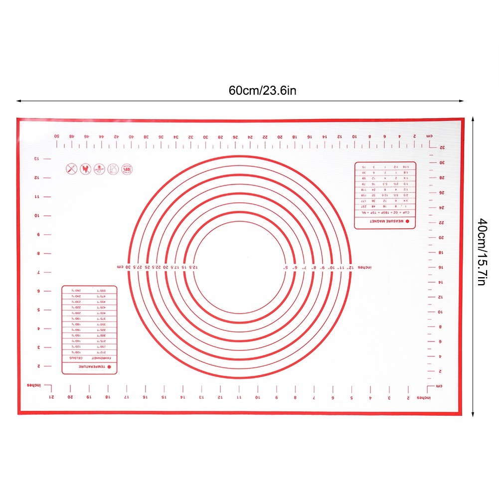 (Red)Household Kitchen Silicone Nonstick Baking Mat Rolling Dough Pad Cake H