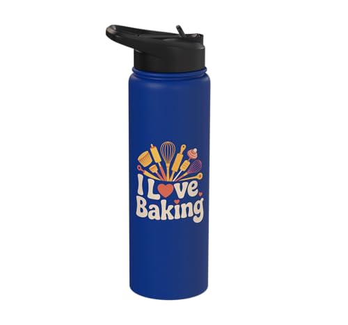 I Love Baking Whisk Rolling Pin Cupcake Delight Stainless Steel Insulated Water Bottle