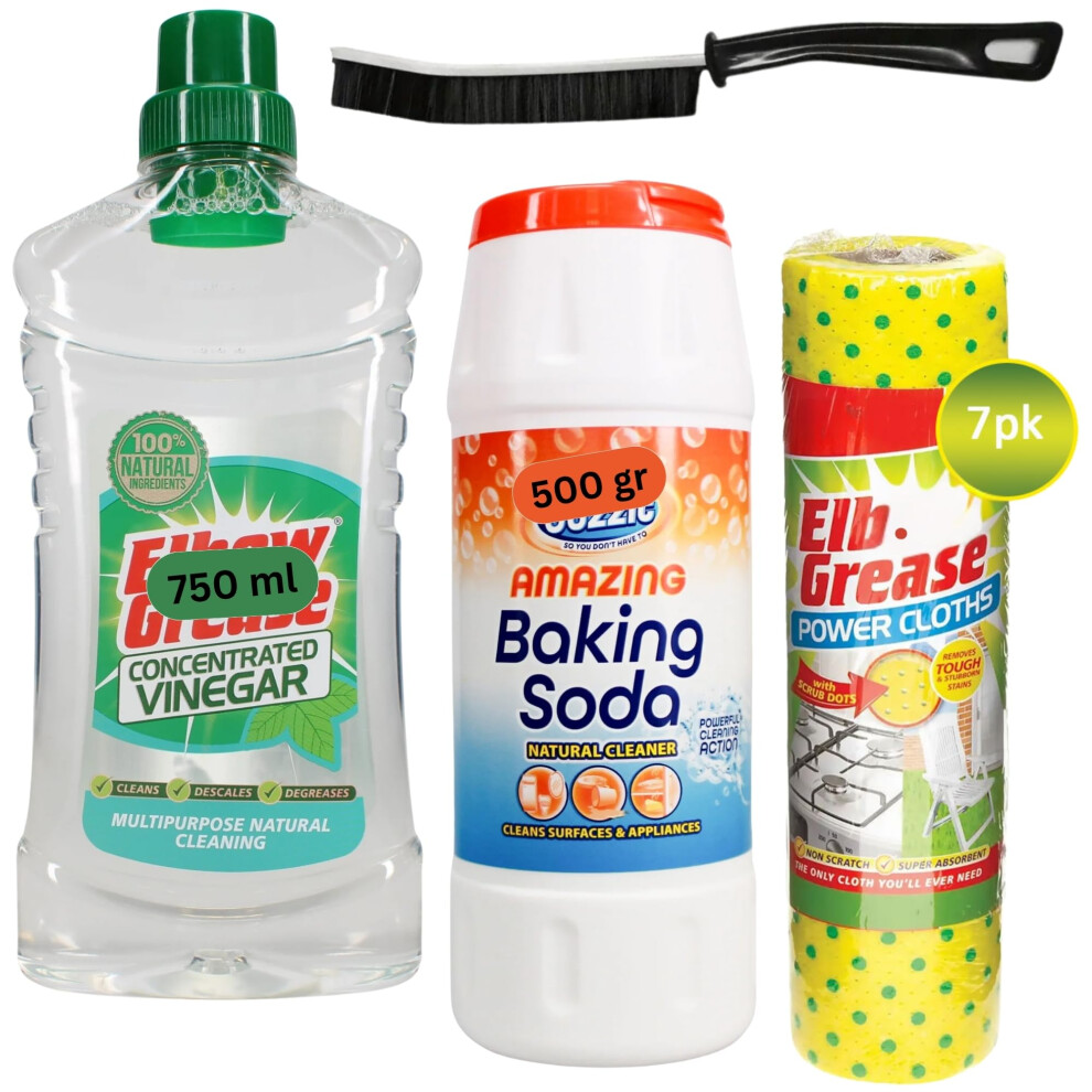 Baking Soda and White Vinegar for Cleaning Bundle - Including Bicarbonate of Soda for Cleaning, White Vinegar Concentrate, Non-Scratch Power Cloths