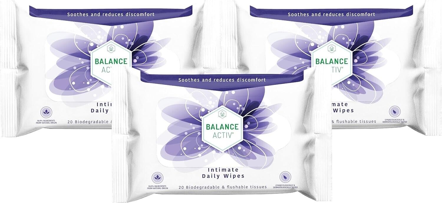 3 x BALANCE ACTIV Intimate Wipes (20 per pack)