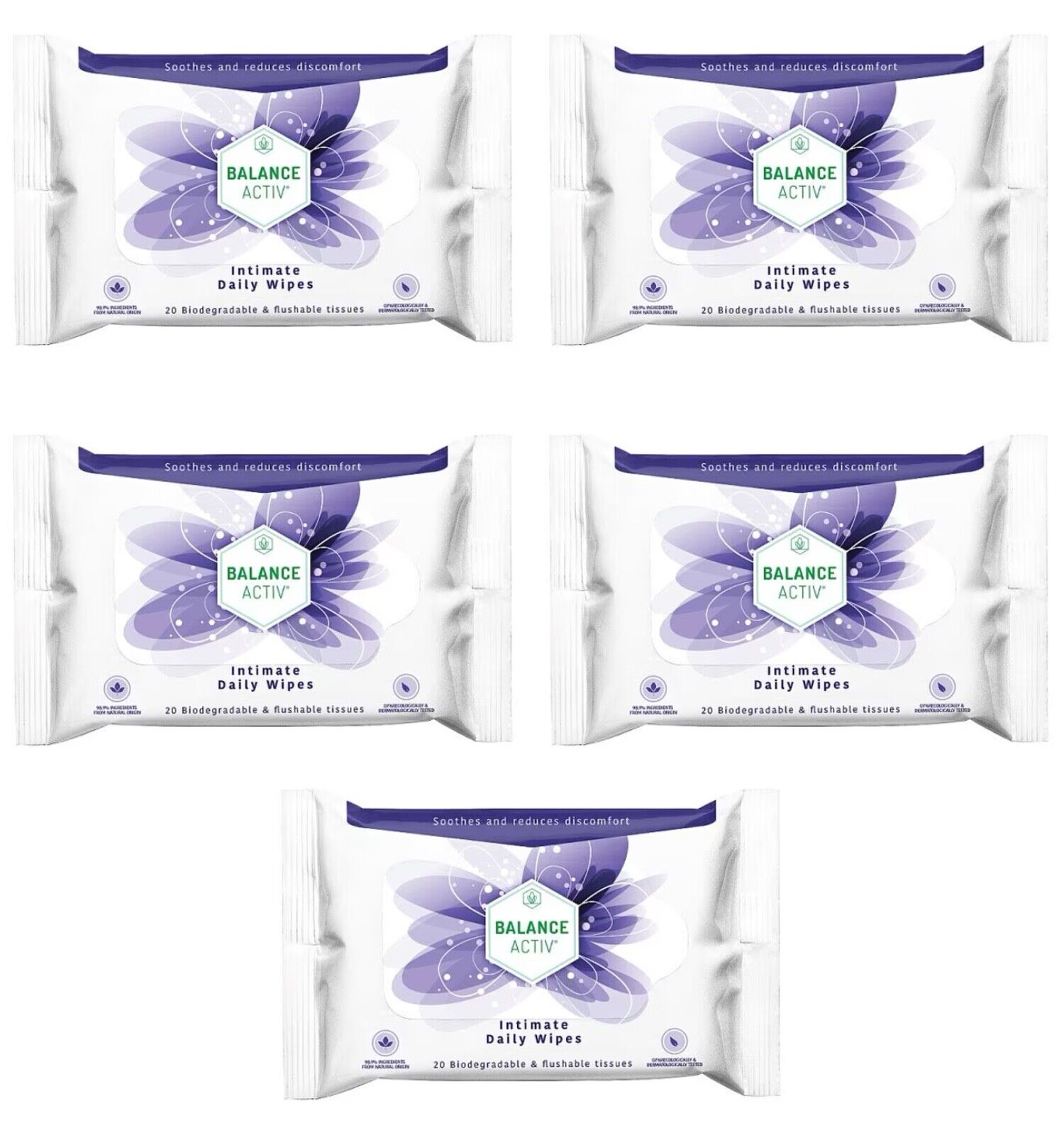 5 x BALANCE ACTIV Intimate Wipes (20 per pack) **only £5.49/pack**