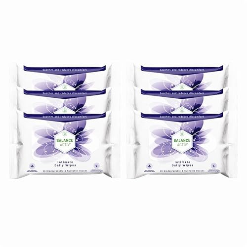 Balance Activ Intimate Wipes, Biodegradable, Flushable & pH Balancing, Natural Extracts of Aloe Vera, Mallow & Calendula to Soothe & Reduce Discomfort, 20 Wipes (Pack of 6)