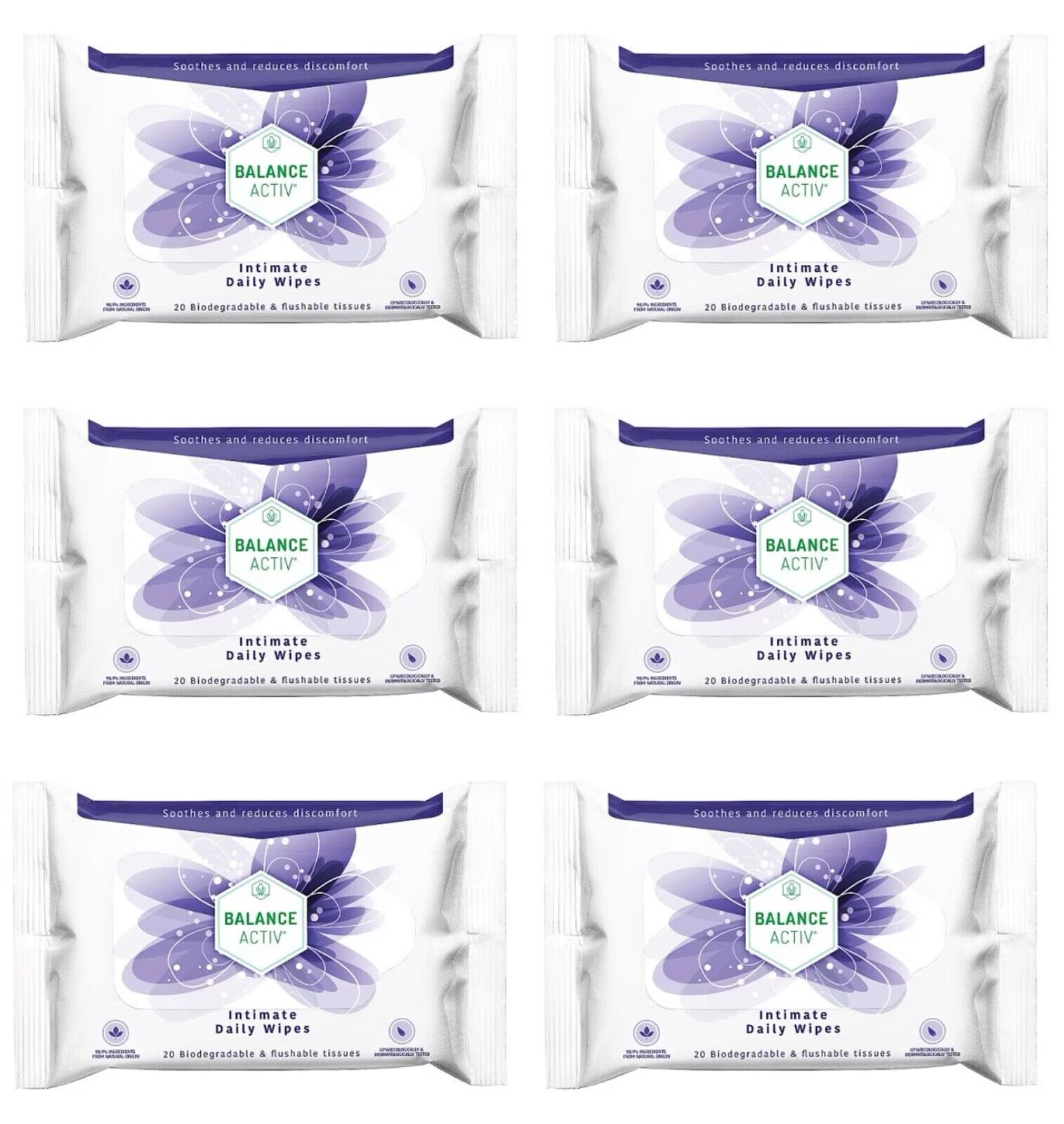 6 x BALANCE ACTIV Intimate Wipes (20 per pack) **only £5.32/pack**