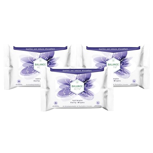 Balance Activ Intimate Wipes, Biodegradable, Flushable & pH Balancing, Natural Extracts of Aloe Vera, Mallow & Calendula to Soothe & Reduce Discomfort, 20 Wipes (Pack of 3)
