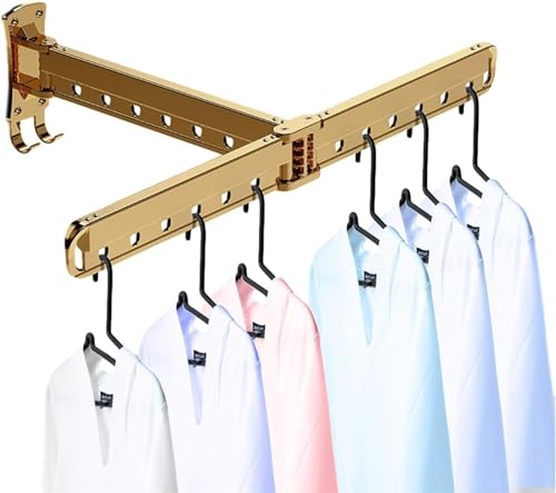 YCVAWEOD Folding clothes drying rack Gold Wall-Mounted Clothes Airer with Space-Saver Hangers - Folding & Retractable Design for Balcony, Patio, Mudroom, and Bedroom - Universal Towel Rail LWX