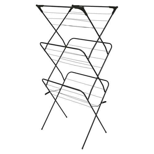 Harbour Housewares 3 Tier Foldable Clothes Airer - Black - 1x Indoor Outdoor Home Kitchen Balcony Compact Portable Folding Collapsible Laundry Clothing Washing Drying Dryer Hanger Rack