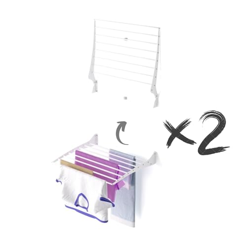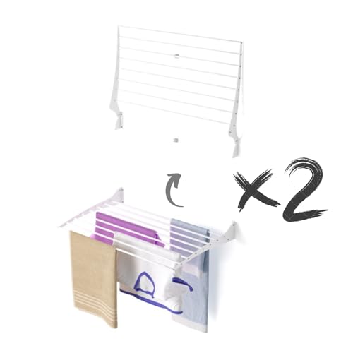 foxydry Fold Wall Mounted Clothes Airer Folding Balcony Indoor or Outdoor Aluminium and Steel (2 x 60 cm)