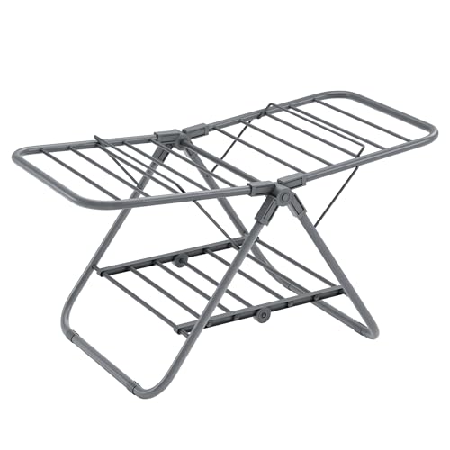 SONGMICS Small Laundry Airer, Foldable 2-Level Clothes Drying Rack, Space-Saving, Metal Structure, for Small Clothes, Towels, Bathroom, Balcony, 44 x 101 x 54 cm, Dove Grey LLR504G01