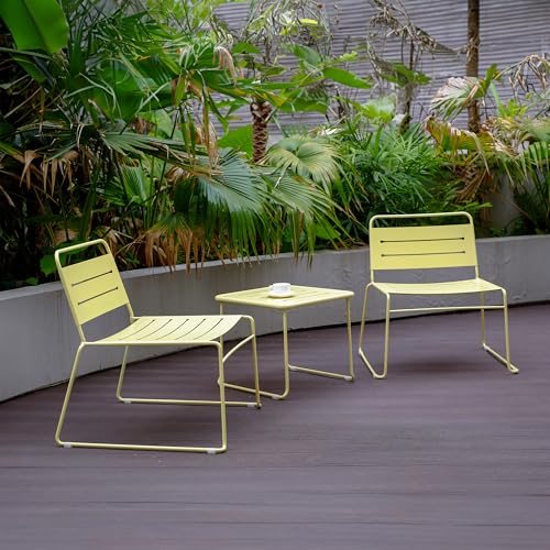 casa.pro Andria Steel Garden Furniture Set 3-Piece Vanilla Yellow Balcony Table with Garden Chairs Patio Furniture Outdoor