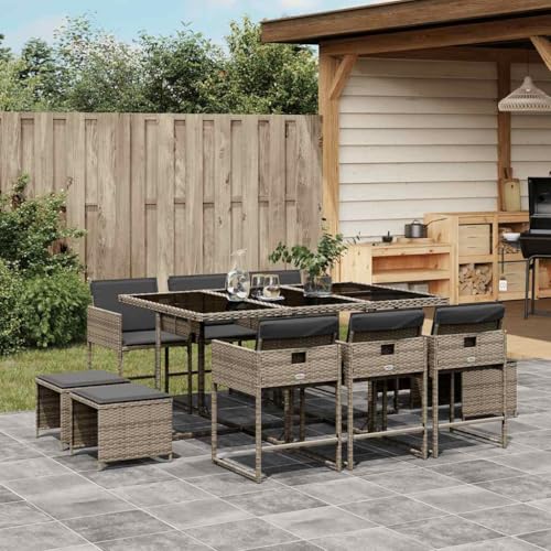 LoogCape 11-Piece Garden Dining Set with Cushions Grey Poly Rattan Space Saving UV Resistant Weatherproof Garden Patio Balcony Table and Chairs